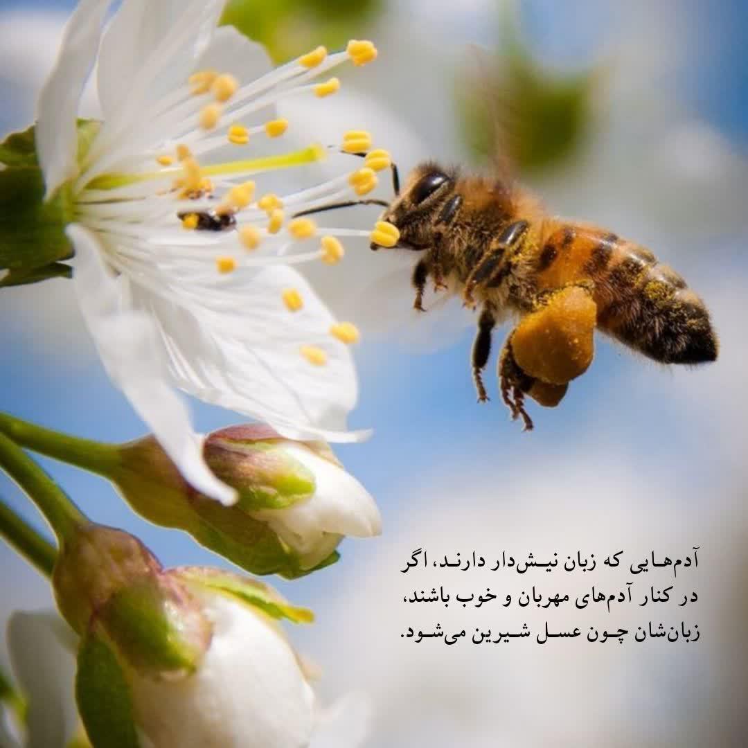 🐝زنبور با این که نیش می زند، اما بر روی گل های زیبا می نشیند و از شیره آن میخورد و عسل شیرین میدهد.