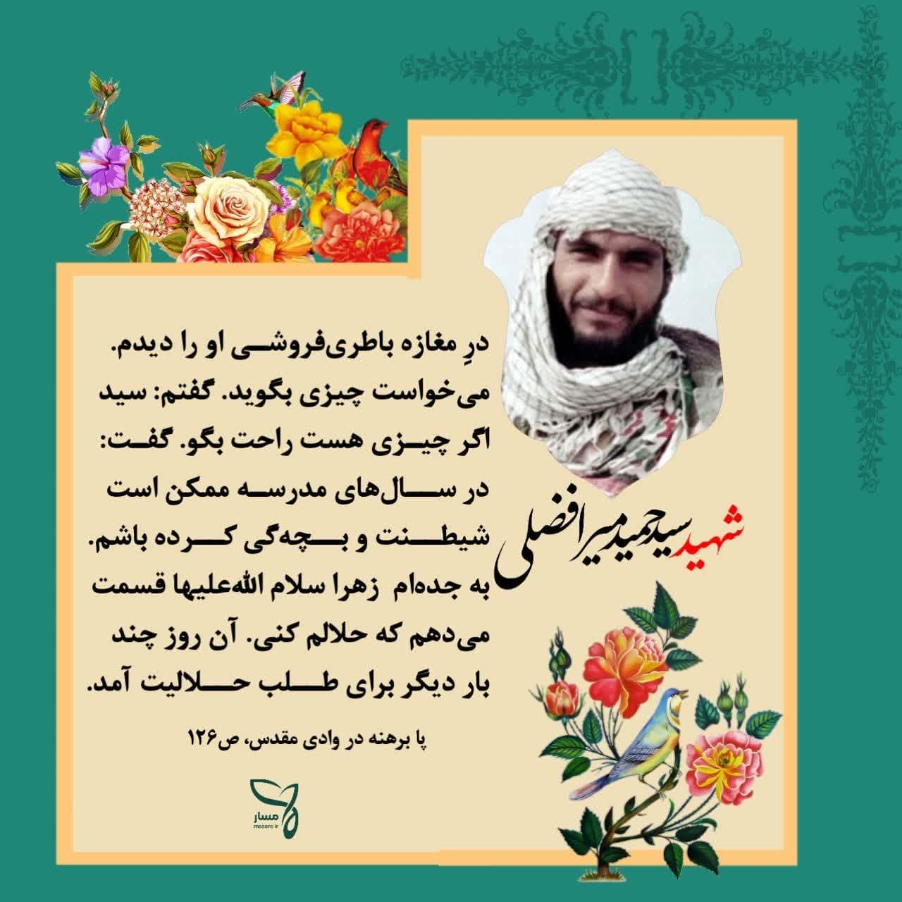 🍃گفت: در سالهای مدرسه ممکن است شیطنت و بچهگی کرده باشم. به جدهام ام زهرا (س) قسمت میدهم که حلالم کنی.»