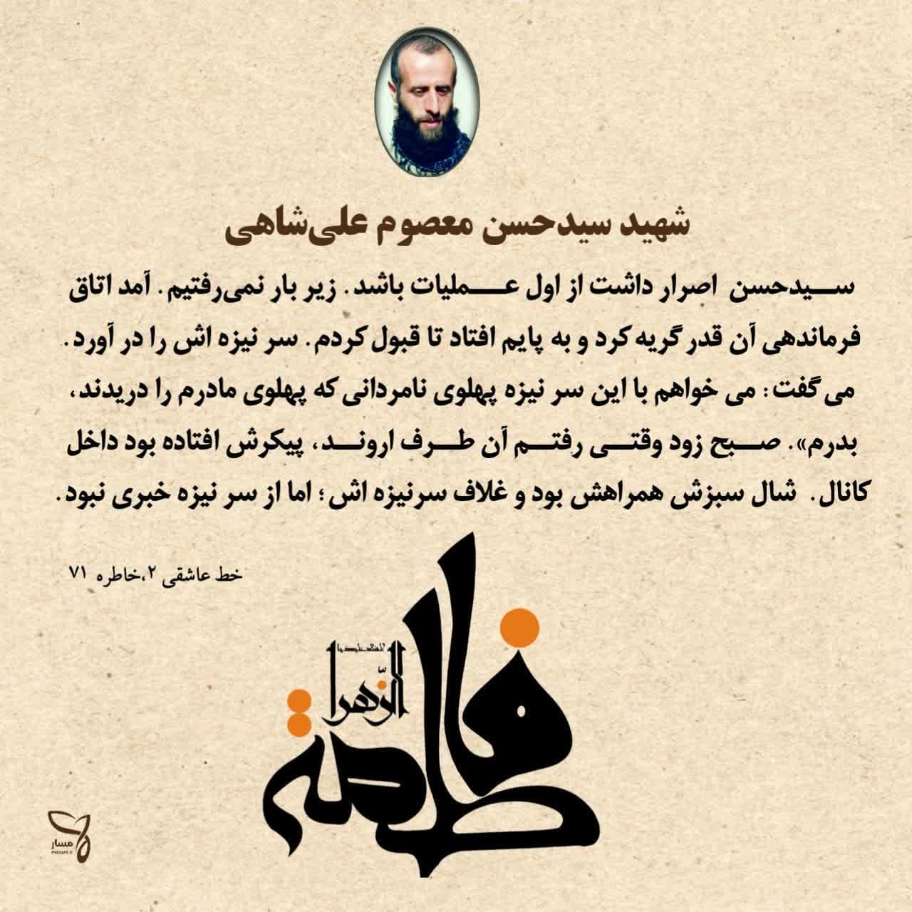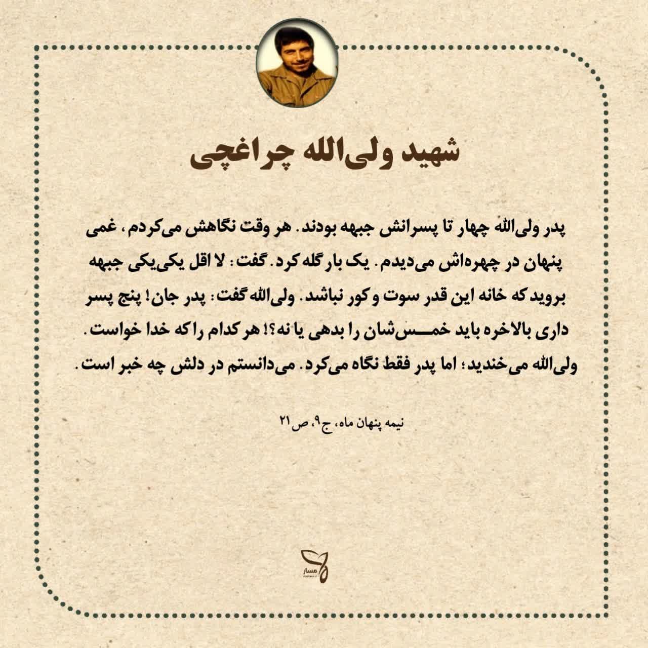 🌺حسین گفت: «می دانم این هدیهای باشد از طرف من.» فردا عصر که شد و و حسن را کلاش به دوش در سپاه هویزه دیدم. از تعجب خشکم زد.