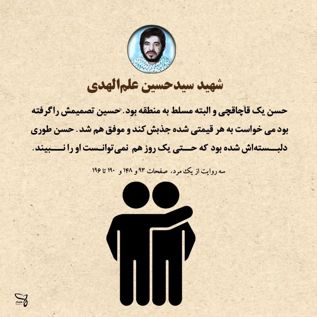💫حسن گفت: «من یک قاچاقچی هستم؛ دشمن شما! » حسین گفت: « به خودت دروغ نبند و اسلحه کلاش خود را از دوشش برداشت و به حسن داد و گفت فردا بیا مقرر سپاه.