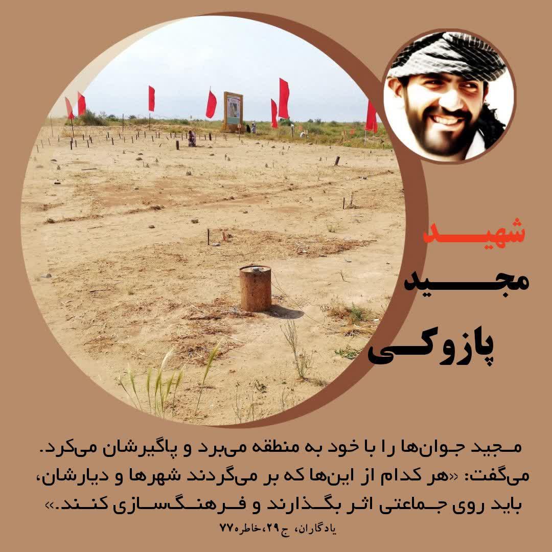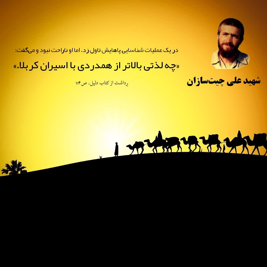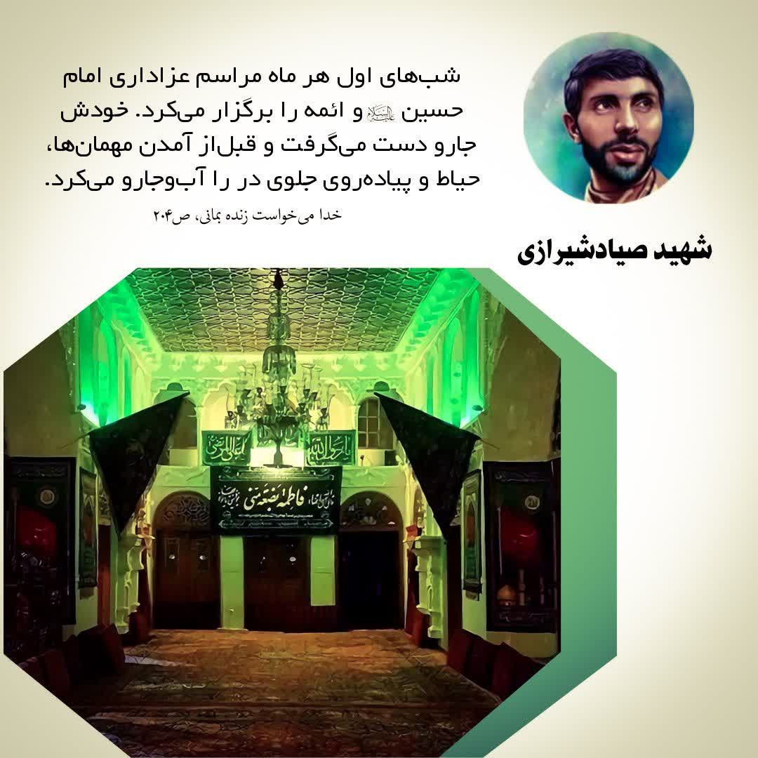 🔺 خانه تازه رنگشده بود و موکت هم نداشت. برگشت یکی از بچهها را صدا کرد و گفت: «آقای جمشیدی! برو بازار چندمتر پرچم بگیر و بیار دور تا دور این اتاق نصب کن. از این پارچه هایی که روش شعر نوشتهشده؛ “باز این چه شورش است” از همونها بگیر و بیار.»