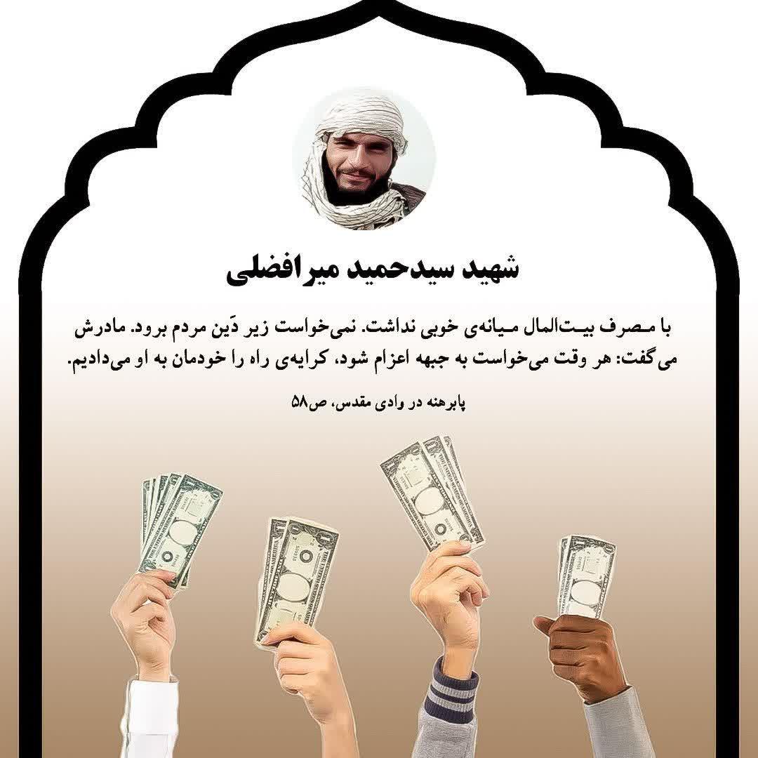 🌾۱۰ساله که بود پول تو جیبیهایش و پولهای کار کردنش را جمع میکرد، وقتی میدید سفرهمان خالی شده و پولی در خانه نیست، به من میداد تا نان تهیه کنم؛ حتی یادم هست که مسافت طولانی بین خانه تا مدرسه را پیاده میرفت تا پولش را پس انداز کند.